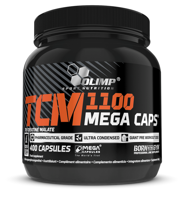 TCM 1100 MG Mega Caps® > A POWERFUL DOSE OF PHARMACEUTICALLY CLEAN CREATINE MALATE > 1100MG OF CREATINE MALATE IN 1 MEGA CAPS CAPSULE > TCM Mega Caps® contain 100% creatine malate (Tricreatine malate)