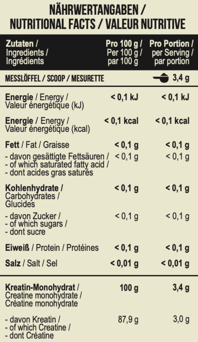 Склад (інгредієнти): креатин моногідрат (100%).
